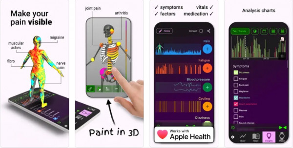 - An app for people with long-term pain conditions such as fibromyalgia, arthritis, neurological pain, and headaches, to log pain episodes, management techniques, and results.