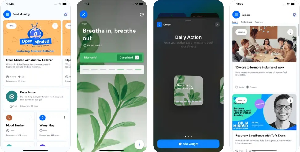 Groov app provides information, activities and videos about mental and emotional wellbeing. It incorporates a mix of scientifically sound information, personal story videos, and practical advice on practices that can help build resilience and cope with stress. It is not designed to be treatment for significant mental health problems, but to prevent them and help support self-care and wellness. For the complete app description, go to the App website(external link), Google Play(external link) and the App Store(external link), or for a more detailed review, see reviews below.