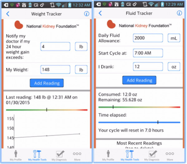 Comments: The app is useful for people who are monitoring their fluid intake and need to keep track of their fluids, blood pressure and weight. The user manually inputs daily data which is presented graphically and can be sent to others such as healthcare providers. The user can set targets which will alert the user if their weight, fluids or blood pressure are out of target range. Users can also include doctors' appointments and create a list of their medicines and questions to ask their healthcare provider. There is a good glossary and educational material about heart failure, kidney failure and other related conditions.