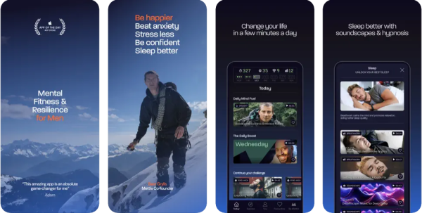 Mettle is a well-being app with a focus on helping men improve sleep, reduce anxiety, relieve stress, boost motivation and develop better life habits. The app is co-founded by TV personality Bear Grylls, who appears within some of the material. The app also incorporates ideas and expertise from other personalities Paul McKenna and Dr Alex George. These are usually presented in the form of short guided audios or videos, which share an idea or a process to work through.