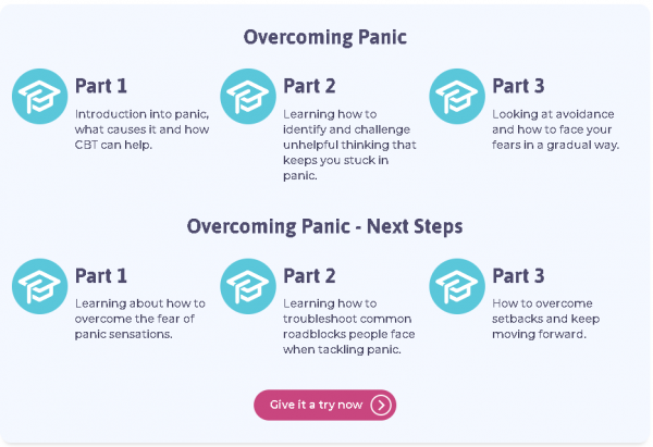3) Avoidance and safety behaviours - in this part users learn how to approach things in life that they may have been avoiding because of panic.
