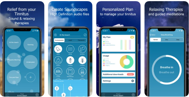 The ReSound Tinnitus Relief app provides a range of relaxation sounds to assist with tinnitus desensitisation, relaxation strategies, information about tinnitus, and a management plan to help keep on track.