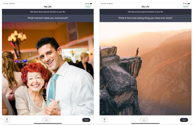 - An app to encourage interaction and conversation with people with mild-to-moderate dementia.