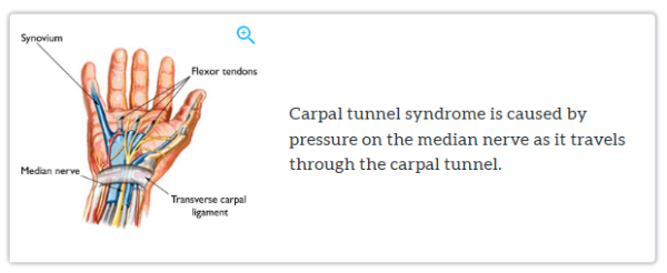 Learn more about carpal tunnel syndrome(external link) with this online module developed by doctors from the American Academy of Orthopaedic Surgeons. Topics range from causes, symptoms, diagnosis, to non-surgical and surgical treatment, risks and complications (audio available).