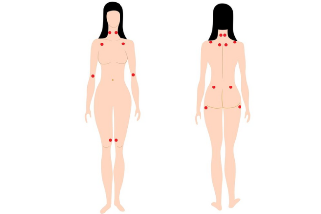 A characteristic of fibromyalgia is a number of ‘tender points’ at common locations in your body. A muscle examination reveals these tender areas which can be extremely painful when pressed but otherwise may not hurt at all. You may not even be aware of the presence of these tender points until a doctor performs a ‘tender point evaluation’. These tender points are not required for a diagnosis of fibromyalgia, although researchers may use them to identify who might participate in a research study.