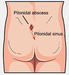 This can form a lump (pilonidal cyst) that isn't painful or red. If this cyst gets infected it becomes a pilonidal abscess.