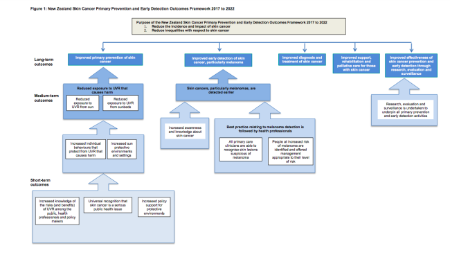 The NZ skin cancer primary prevention and early detection strategy 2017 to 2022(external link) identifies 5 intervention pathways for reducing incidence, impact and inequalities with respect to skin cancer: