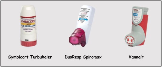- Budesonide and formoterol (Vannair®, Symbicort®, DuoResp Spiromax®).
