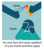 - If using a spray, do not spray repellent on your face, in your ears or near your eyes or mouth. To apply a spray repellent to your face, first apply it to your hands and then rub it onto your face.